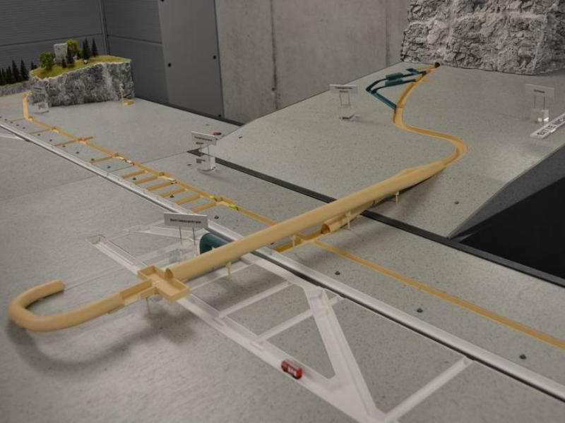 - Ansicht der Modell der Basistunnel mit all den verschiedene Zugängen