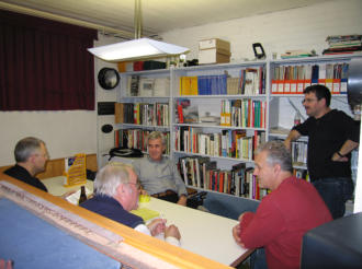 Sitzecke mit einer umfangreichen Bibliothek. Um auf