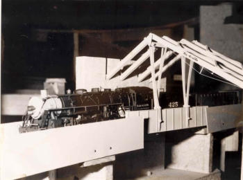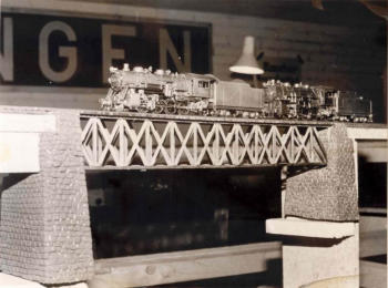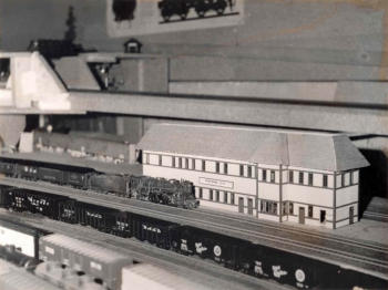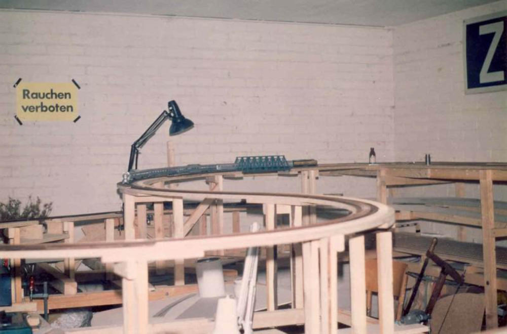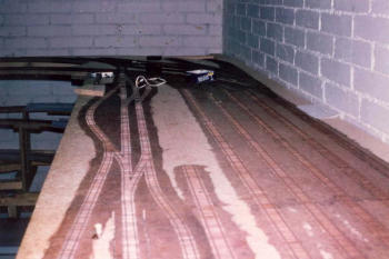 Nachdem der Schattenbahnhof erbaut wurde, machten sich die Mitglieder an den Bau der Hauptstrecke über "Parterre City" nach "Freemont" und dann weiter in Richtung Schlucht.Hier entsteht der Bahnhof "Freemont". Hier zweigt die Nebenlinie in Richtung "St. Barbara" ab. Vorab ist noch die Gleisanlage der Schmalspur-Strecke. Im Hintergrund kreuzt sie die Haupstrecke. Auf dem zweiten Bild sieht man schön, den Eigenbau einer 3-Schienenweiche.